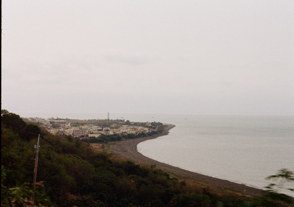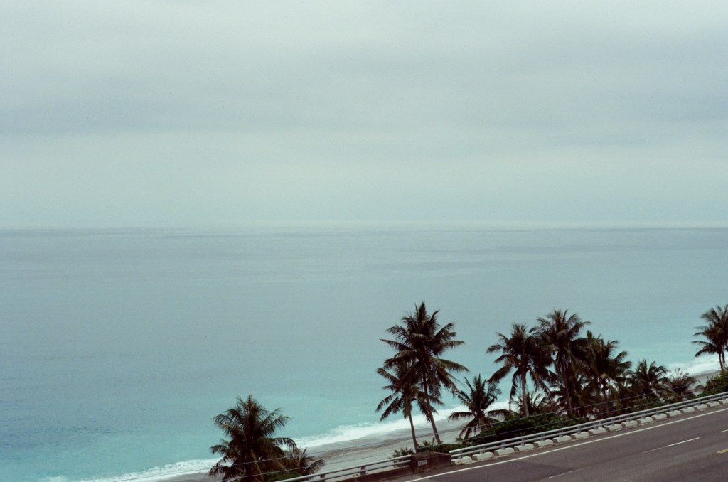 飯糰老闆娘說的話我有記著。從屏東慢慢前往台東窗望的景色又開始變化,遼闊的海出現了,是海!雖然今日天氣灰濛濛沒有看到藍天白雲,但也因為這個天氣讓我們一路上就算沒有冷氣也不覺得悶熱。