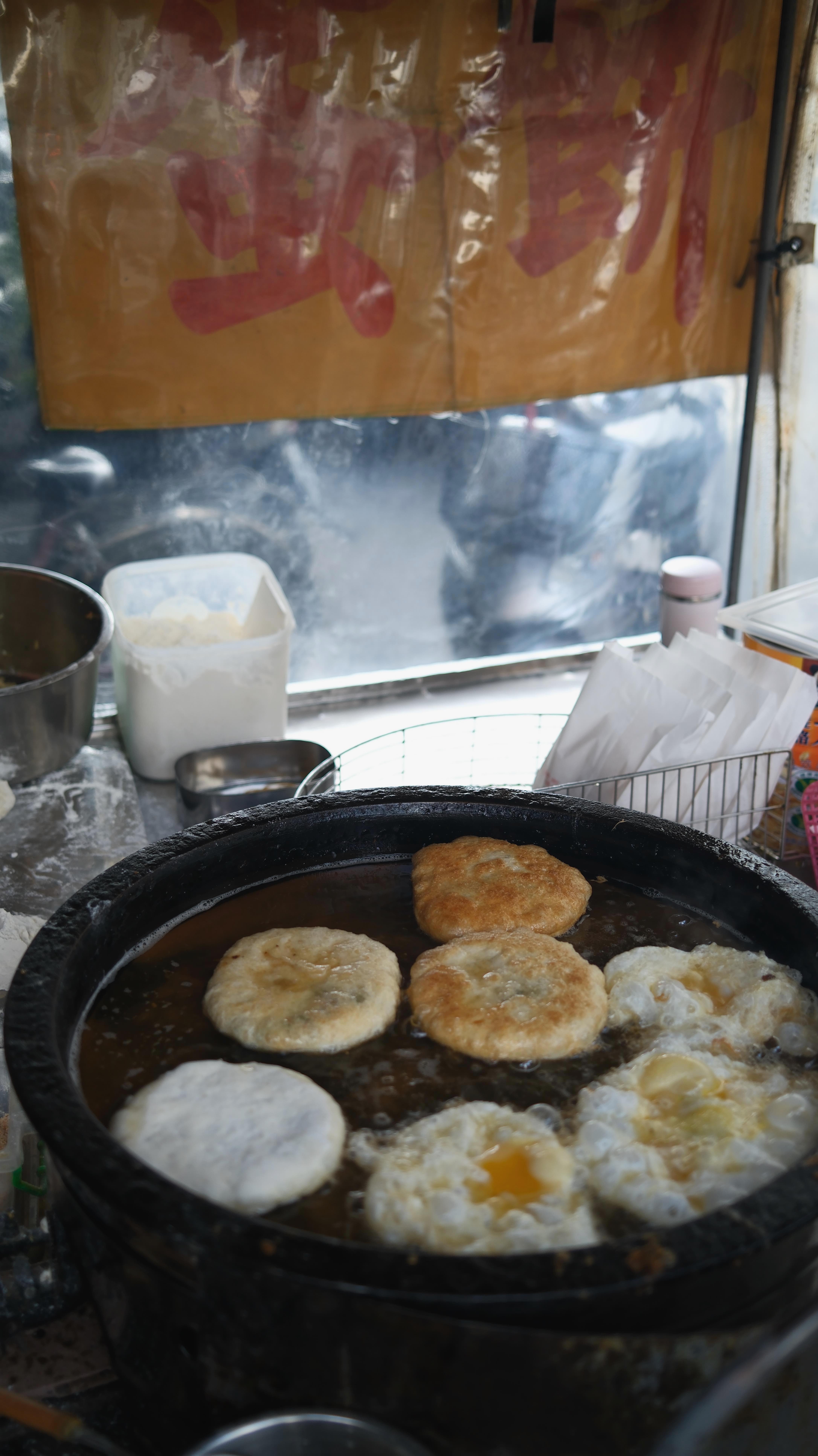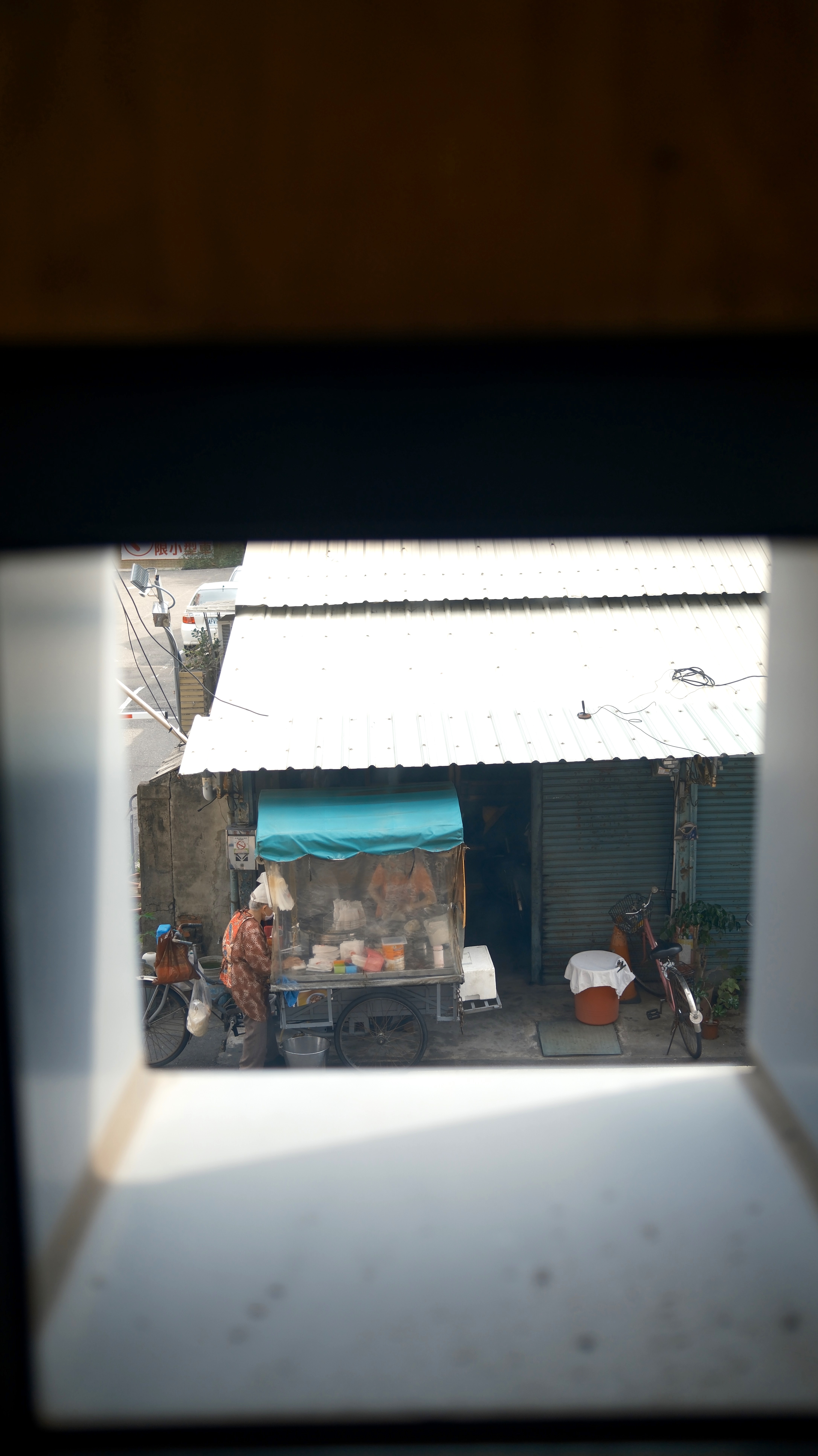 在逛美術館的時候,從樓梯的窗戶看到這間小攤販。離開美術館,我們到攤販點一塊鹹的餅吃吃看。