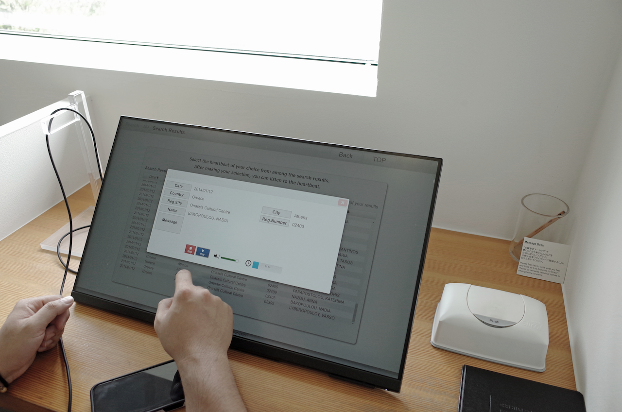 第二個空間收集著來自世界各地人們的心跳聲,點選螢幕國家、姓名選擇,就可以聽到不同人們的心跳聲。