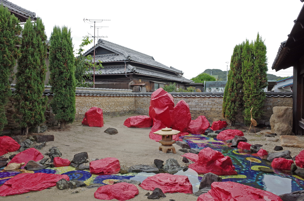 最後參觀由老民宅所改建成的豐島橫尾館,整個內部充滿極飽和的紅色、顏色極鮮豔,搭配著裡頭抽象的藝術作品
