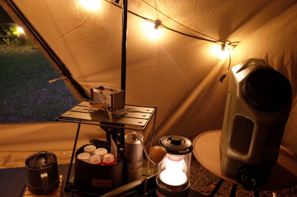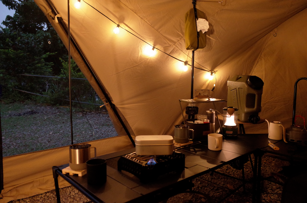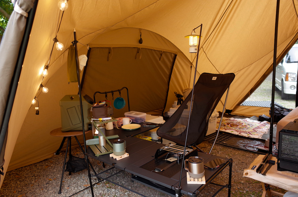 因為這頂帳篷是T/C棉,整體重量比起之前的帳篷+天幕重上些許,所以有將桌子替換較輕巧的IGT桌。