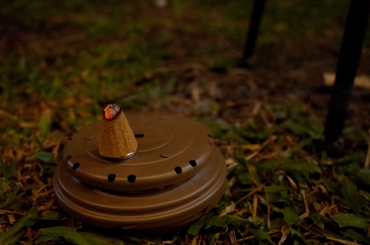 之前點香椎沒有特別買容器,只能先暫放在防蚊香的盒子上。
