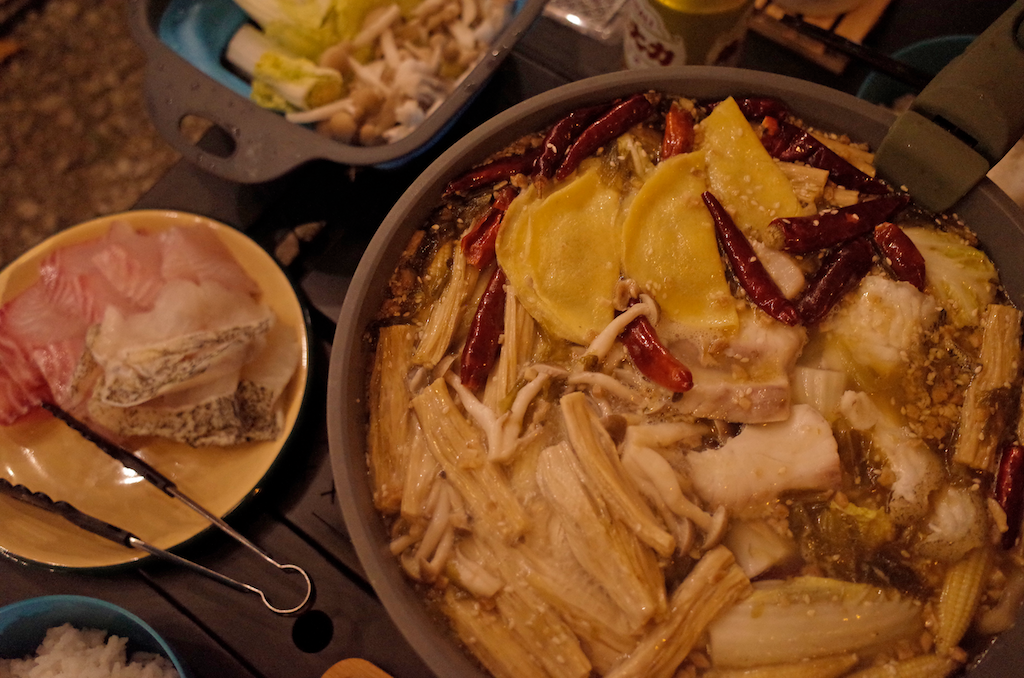晚餐吃家人分享的酸菜魚湯包,另外再買一些食材加入一起煮