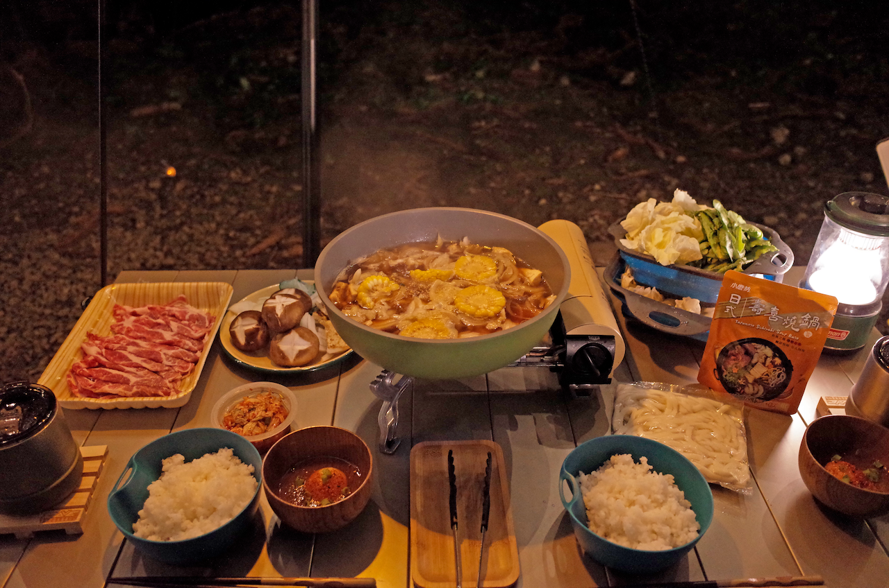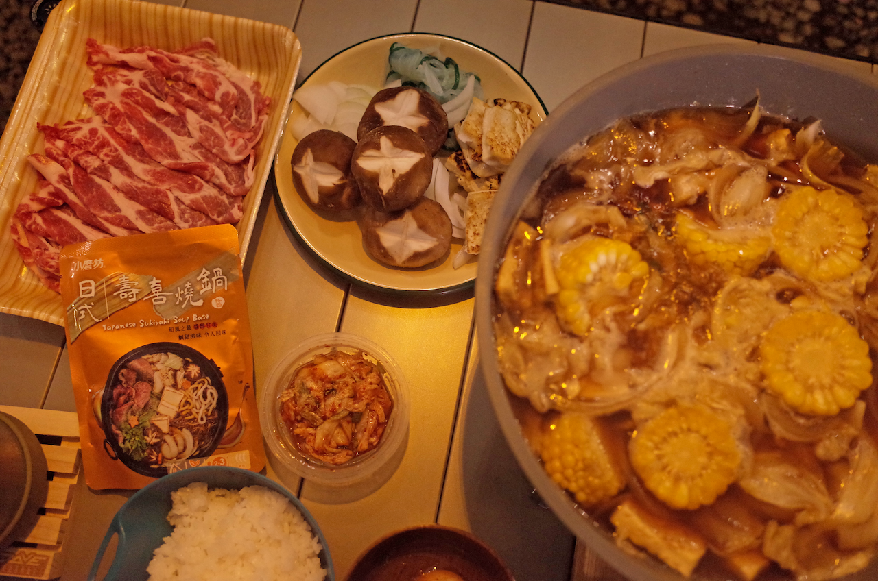 晚餐用小磨坊出的日式壽喜燒醬簡單的滿足一餐,一包約2-3人份。出發前都會習慣將材料都準備好,這樣就不用花太多時間在備料和洗菜,還有冬天在山上碰個水真的會冷~到不行,所以還是先把材料都整理好再出門比較方便。