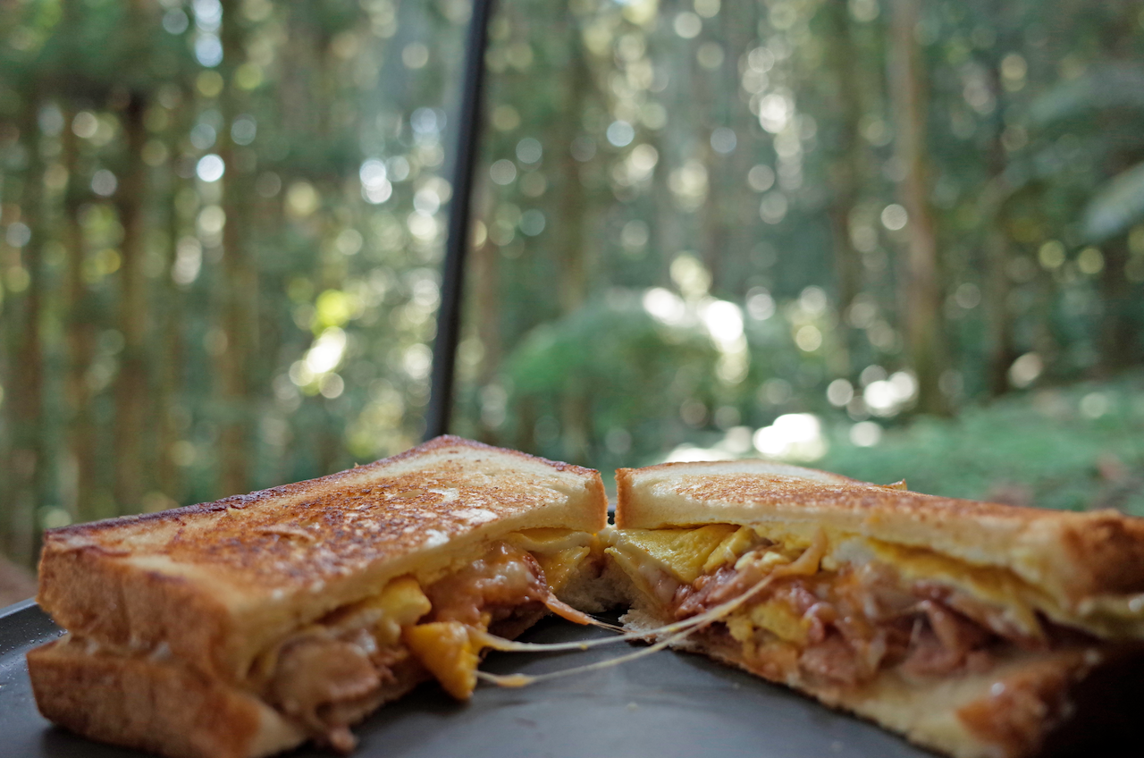 隔天早上起床煎了一塊培根起司蛋吐司後,整理裝備準備下山。
