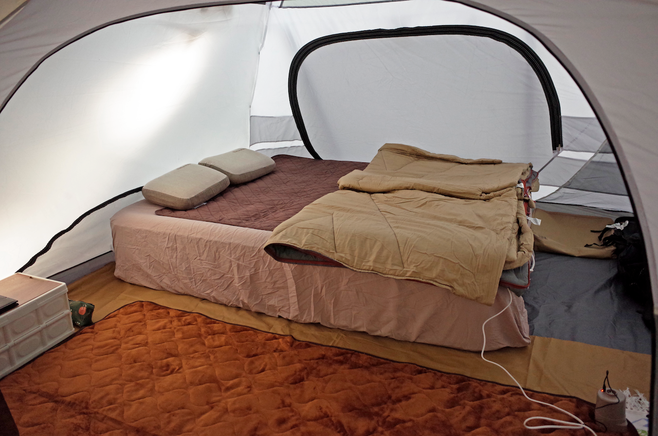 第一次冬季露營怕晚上睡覺會冷,出門前帶上電暖器及電熱毯,希望晚上一覺好眠。