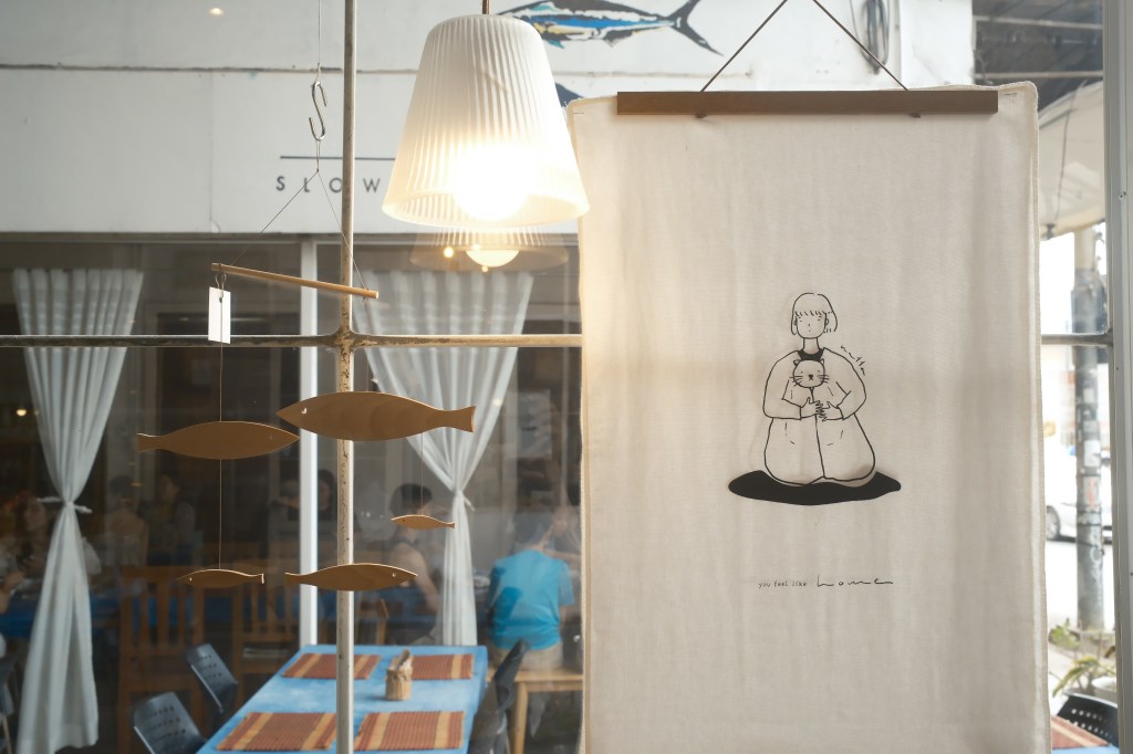 販售的選物沒有像ENOUGH FOR LIFE的貝殼餐具這麼大量,就像是精挑細選的物件,不定時陳列出新商品,離開清邁前一天我們又二訪Rivers & Roads,確實被我們找到那天沒看到的大象畫作,沒錯,放入購物籃。